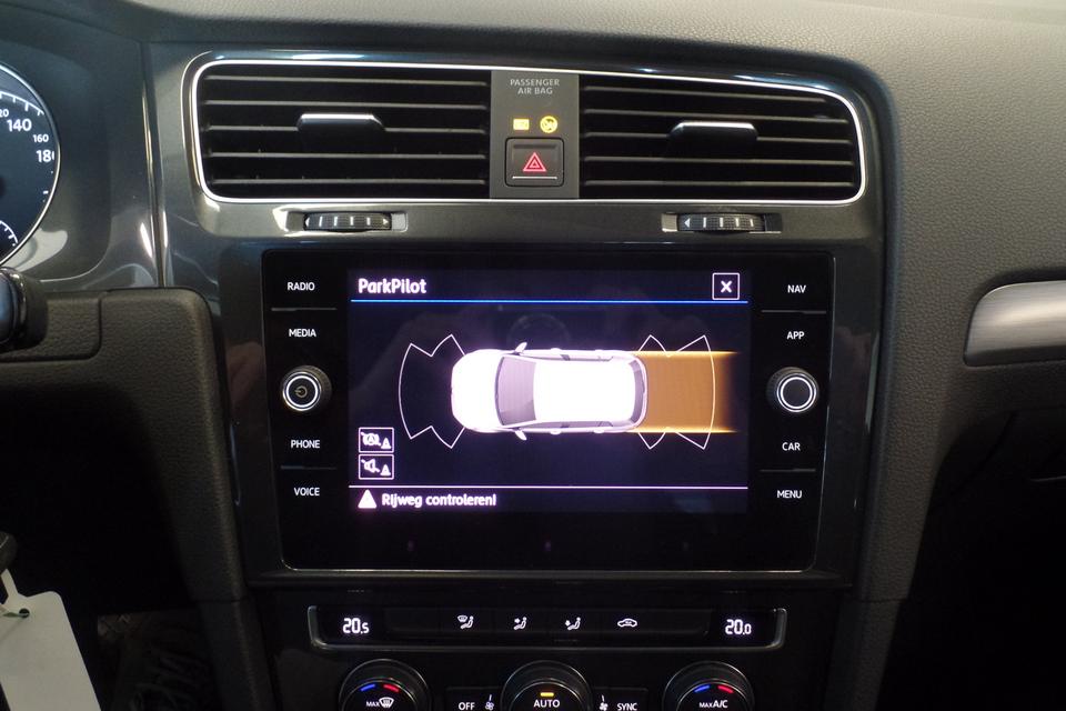 Met adaptive cruise control houdt deze auto automatisch afstand tot uw voorligger. U kunt het audiosysteem en het navigatiesysteem bedienen met de knoppen op het stuur. Op een drukke weg heeft u soms ogen in uw achterhoofd nodig. De sensoren aan de achterzijde nemen die functie over en geven een achteropkomend verkeer waarschuwing als een achterligger te dicht op u zit. Automatische airconditioning verwarmt of koelt het interieur met een druk op de knop. Een plekje vinden in de binnenstad is één, inparkeren is twee. Voor dat laatste heeft deze Volkswagen Golf prima parkeersensoren die u een handje helpen. Deze auto is voorzien van lederen stuur, centrale deurvergrendeling met afstandsbediening, boordcomputer en lederen versnellingspook.